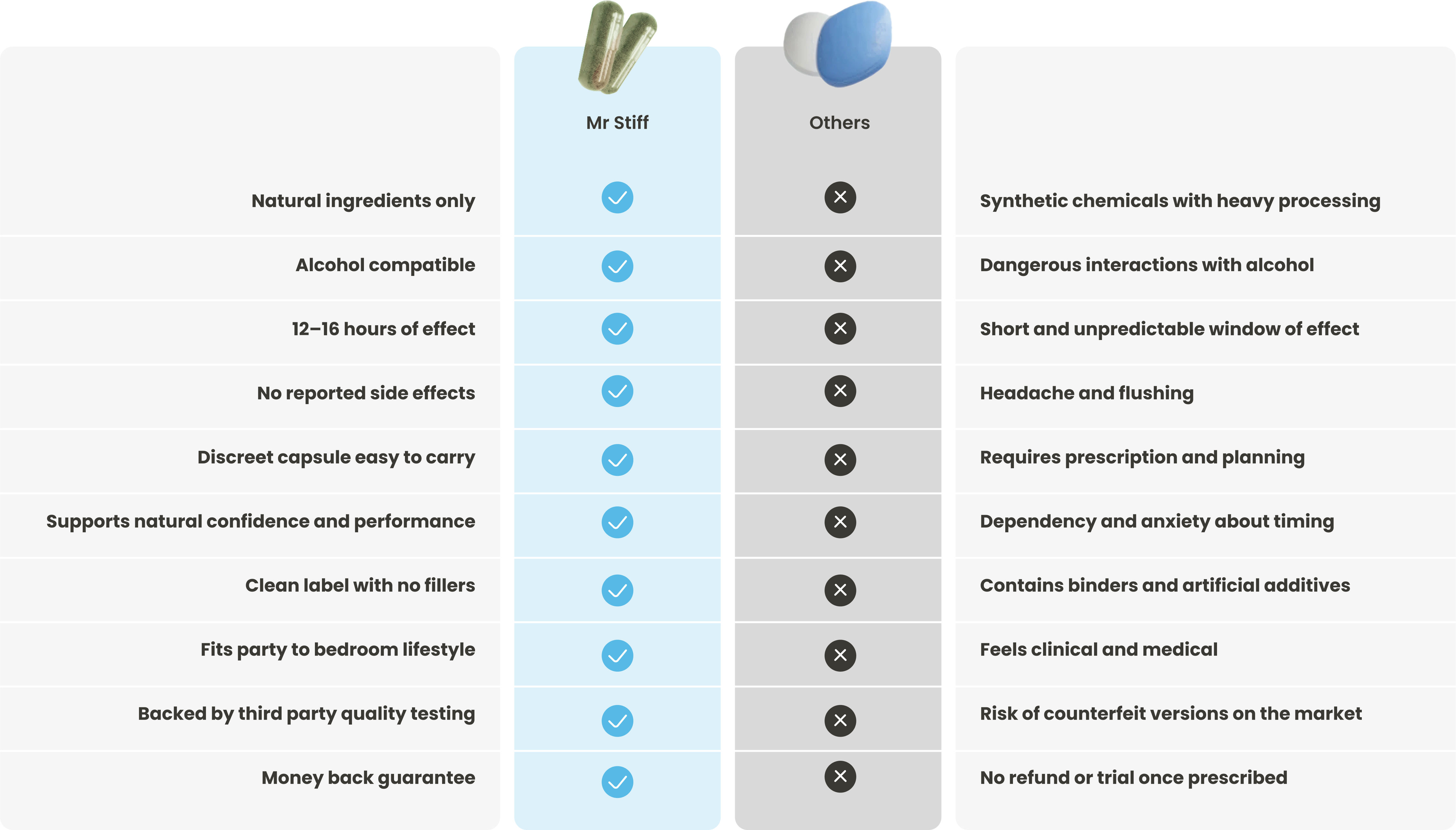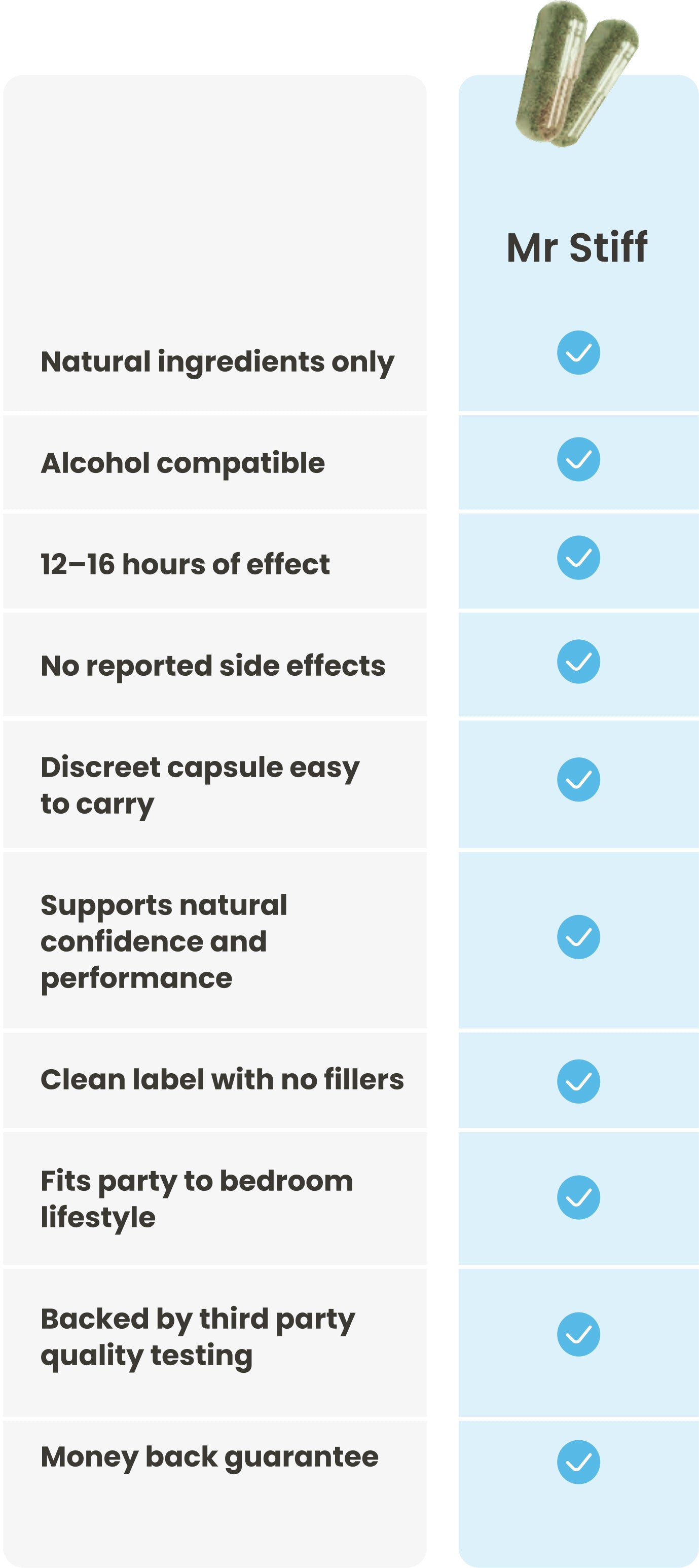 or an intimate evening at home, Mr Stiff helps you perform at your best when it matters most.